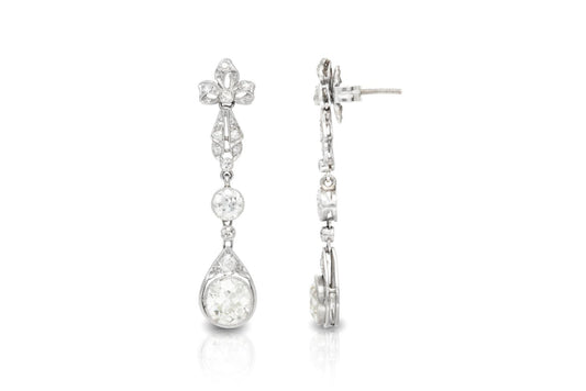 Antique Edwardian 1900s 4.60 Carat Diamond Dangle Earrings