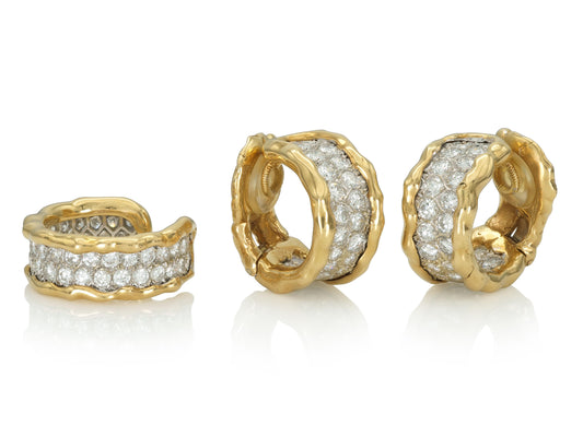 Vintage 1970s Van Cleef & Arpels Diamond Hoop Earrings and Ring Set