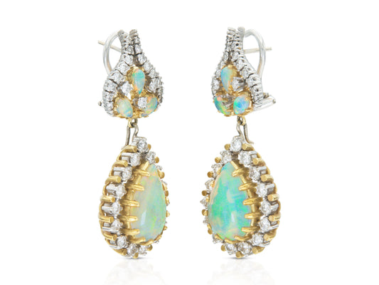 Vintage 1950s Opal and Diamond Detachable Dangle Earrings