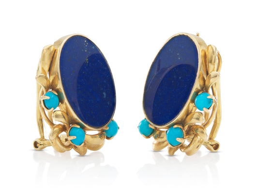Vintage 1960s Lapis Lazuli & Turquoise Earrings