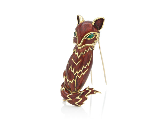 Vintage 1970s David Webb Enamel Red Fox Brooch