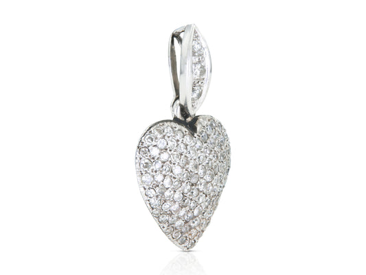 Vintage 1950s 1.10 Carat Diamond Pave Puff Heart Pendant