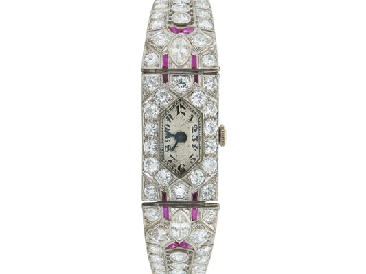 Antique Art Deco 1930s 12.50 Carat Diamond Watch with Rubies