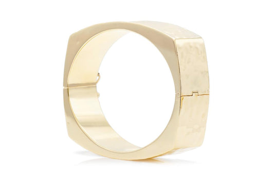 Vintage 1940s Retro Hammered Gold Hinged Square Bangle Bracelet