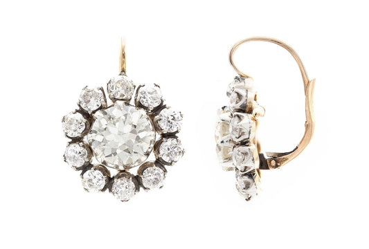 11.33 Carat Old European Cut Diamond Cluster Drop Earrings