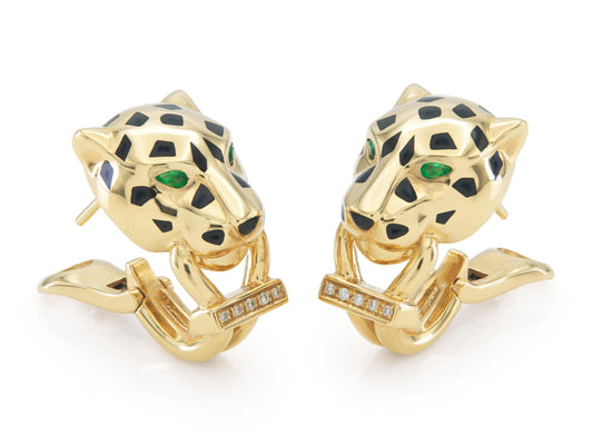 Vintage 1970s Van Cleef & Arpels Chrysoprase, Onyx & Diamond Earrings