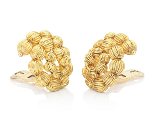 Vintage 1960s Lalaounis Textured Gold Balls Swirl Earrings