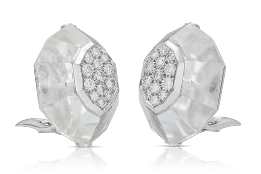 Vintage 1980s David Webb Rock Crystal and Diamond Earrings