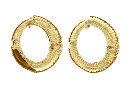 Vintage 1970s Van Cleef & Arpels Gold Hoop Earrings with Diamonds