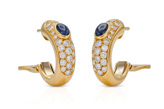 Vintage 1990s Cartier Huggie Earrings with Sapphires and Diamonds