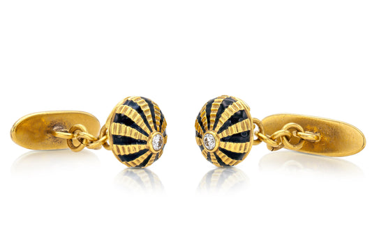 Tiffany & Co. Jean Schlumberger Rayburst Cufflinks with Black Enamel and Diamond