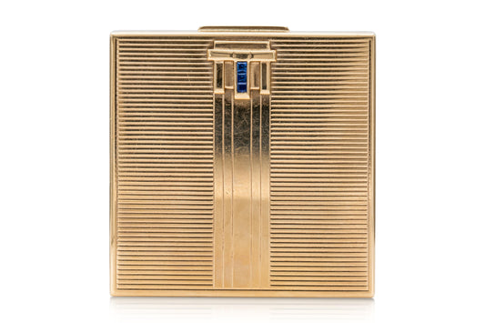 Vintage 1940s Retro Tiffany & Co. Gold Compact with Mirror and Sapphires