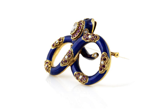 Vintage 1950s Nardi Blue Enamel Snake Brooch