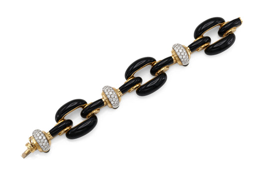 Vintage 1960s David Webb Black Enamel Link Bracelet with Diamonds