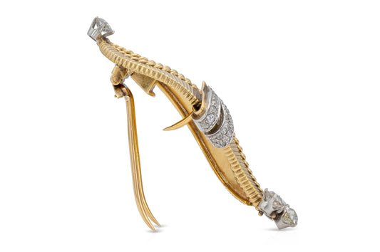 Vintage 1950s Cartier Two Tone Twisted Rope Brooch with Diamonds