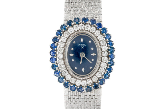 Vintage 1960s Ebel White Gold Watch with Diamonds and Sapphires