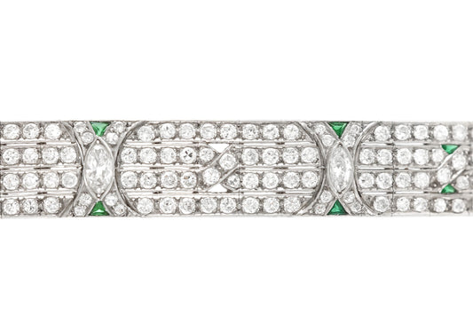 Antique Art Deco 1920's Diamond and Emerald Bracelet
