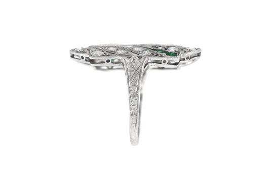 Antique Art Deco 1920s 1.50 Carat Diamond Dinner Ring with Emeralds