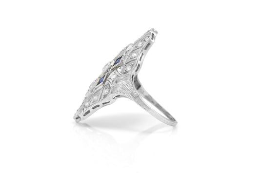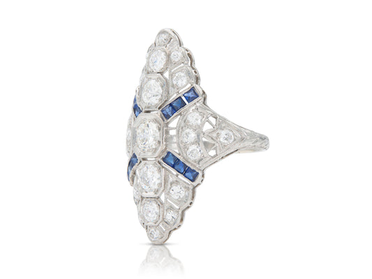 Antique Art Deco 1920s 1.50 Carat Diamond Dinner Ring with Sapphires