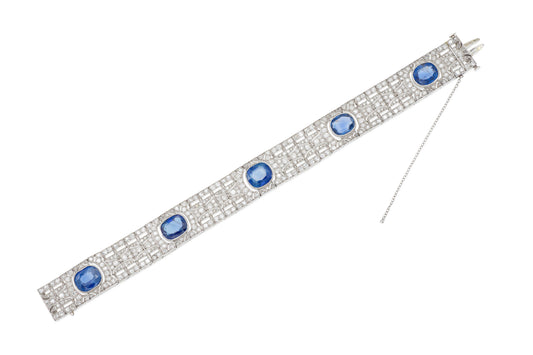Antique Art Deco 1920s 20.00 Carat Burma Sapphire Bracelet with Diamonds