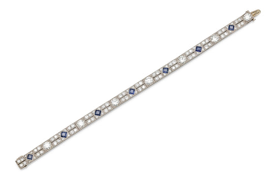 Antique Art Deco 1920s 12.00 Carat Diamond and 3.00 Carat Sapphire Line Bracelet