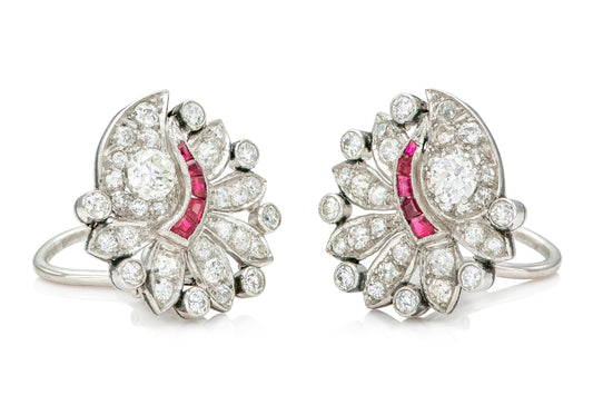 Antique Art Deco 1920s 10.00 Carat Diamond & Ruby Double Clips