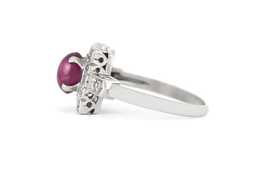 Antique Art Deco 1930s 1.50 Carat Star Ruby Ring with Diamonds