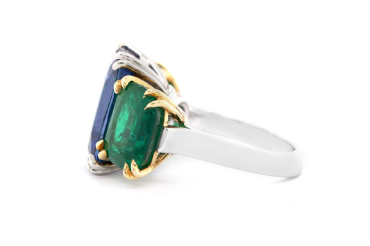 15.11 Carat Burma Sapphire & 9.07 Carat Colombian Emeralds Ring