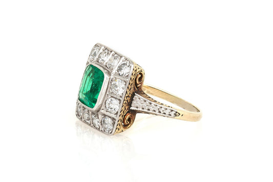 Antique Edwardian 1900s 1.50 Carat Emerald and 1.20 Carat Diamonds Ring