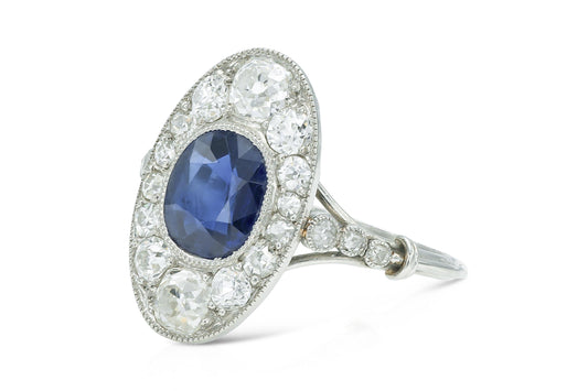 Antique Edwardian 1900s 1.50 Carat Sapphire Dinner Ring with Diamonds