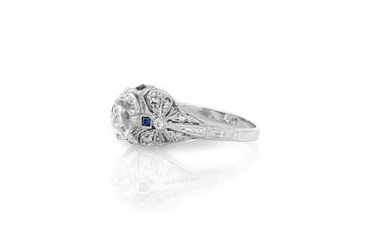 Antique Art Deco 1930s 1.50 Carat Old European Cut Diamond Engagement Ring
