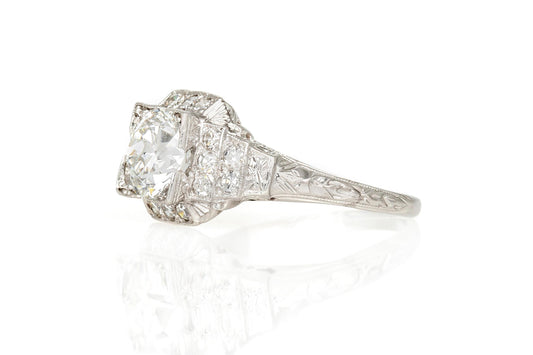Antique Art Deco 1930s 1.25 Carat Old European Cut Diamond Engagement Ring