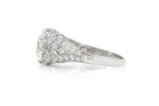 Antique Art Deco 1930s 2.41 Carat Old European Cut Diamond Engagement Ring