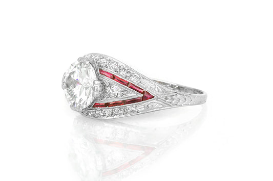 Antique Art Deco 1920s 1.60 Carat Old European Cut Diamond Engagement Ring