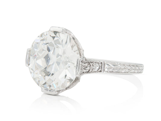 Antique Art Deco 1930s 4.01 Carat Old Mine Cut Diamond Engagement Ring