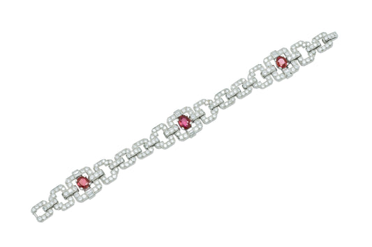 Antique Art Deco 1930s 4.20 Carat Burma Rubies and 13.00 Carat Diamonds Bracelet