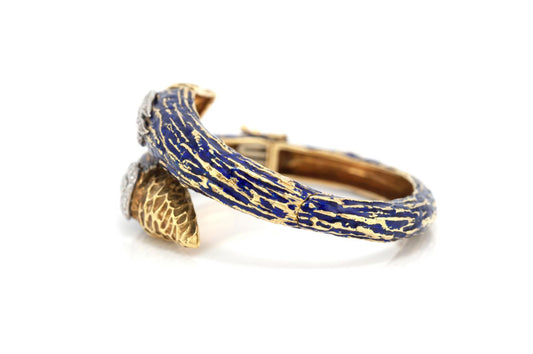 Vintage 1970s Enamel Bypass Hinged Bangle with Diamonds