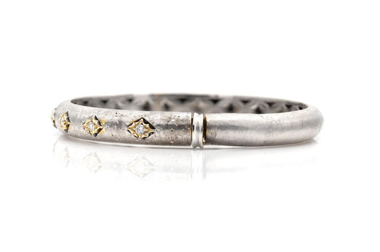 Vintage 1940s Retro Hammered Gold Hinged Square Bangle Bracelet