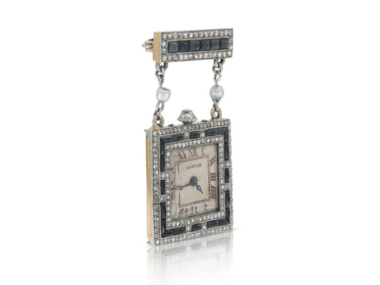 Antique Art Deco 1920s Cartier Diamond and Onyx Watch Brooch