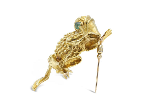Vintage 1970s Frog Brooch with Emeralds