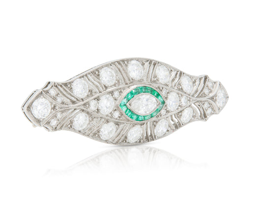 Antique Art Deco 1920s 5.70 Carat Diamond Brooch with Emeralds