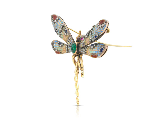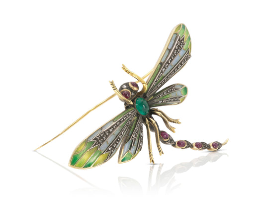 Antique Art Nouveau Plique-à-Jour Dragonfly Brooch