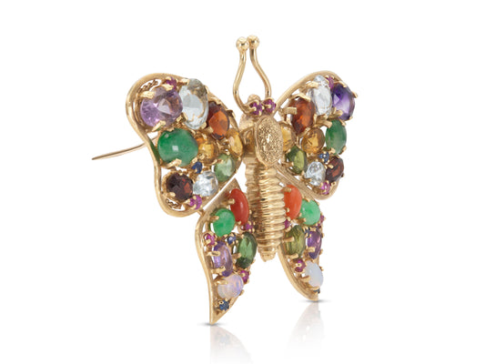 Antique Victorian Enamel and Multi-Gem Butterfly Brooch Pendant