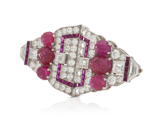 Antique Art Deco 1930s 12.00 Carat Ruby & 7.40 Carat Diamond Double Clip Brooch
