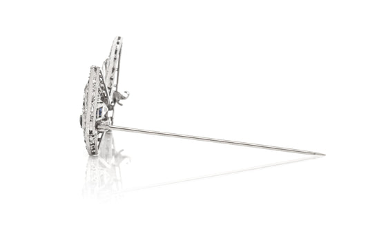 Antique Art Deco 1920s 2.70 Carat Diamond Bow Brooch with Sapphires