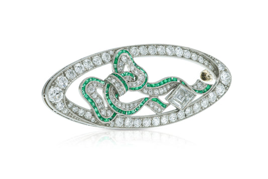Antique Art Deco 1920s3.00 Carat Bow Brooch with Emeralds