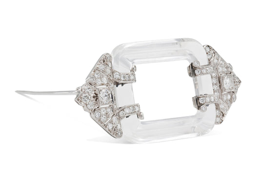 Antique Art Deco 1930s Rock Crystal Brooch with Diamonds