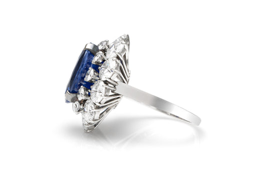 Vintage 1950s Bvgari 10.36 Carat Ceylon Sapphire Ring with Diamond Cluster