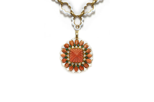Vintage 1960s David Webb Carved Coral Brooch Pendant Sautoir Necklace