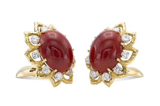 Vintage 1960s David Webb Coral and Diamond Earrings